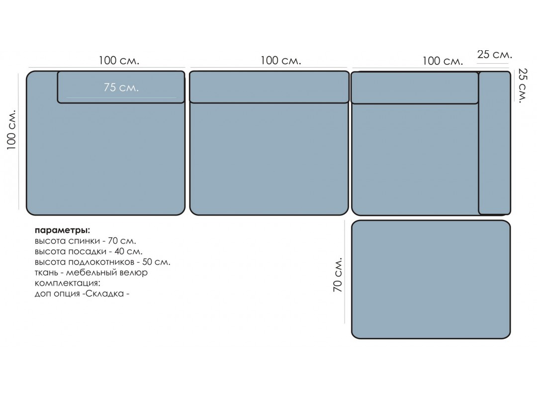 Характеристики :Основной блок: .....................высота 43 см. \ глубина 100 см. \ ширина&n..